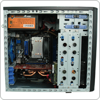 Es wird bewusst auf Dämmmatten und spezielle Grafikkartenkühler verzichtet, trotzdem können wir mit guten Bios Einstellungen den Geräuschpegel niedrig halten. Sie haben also einen günstigen PC mit originalem Grafikkartenkühler der trotzdem nicht so laut wird. Gerade für den Einstieg ist dieses Modell eine optimale Wahl.